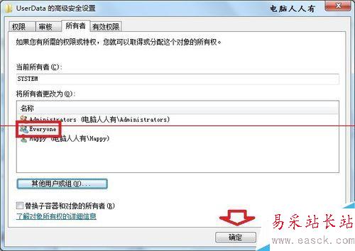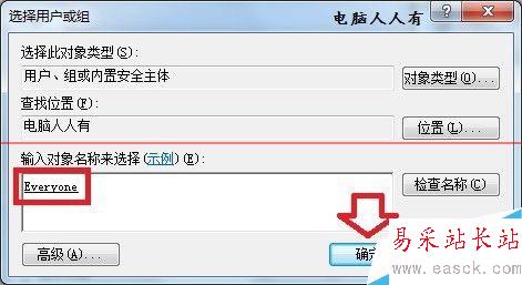6、此時系統會自動輸全Everyone(每個人)賬戶名稱▶確定