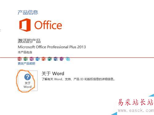 5、在右側菜單選擇<關于word>,點開后就能查到目前軟件的版號本,以驗證升級是否成功。
