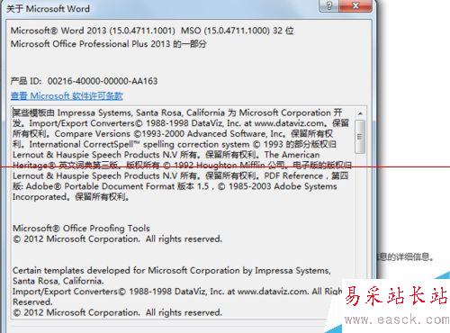 7、安裝完成后,再重啟第5步確認office2013版本是否已經正常被更新,小編目前的版本號為15.0.4711。