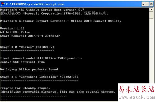 等待卸載完成,清除完畢后會自動退出(時間有點長,還請耐心等待。此步驟將徹底清除office配置文件)。