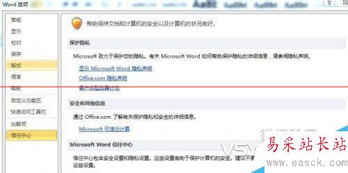 1、打開Word“文件“中的””選項“,選中“信任中心“;