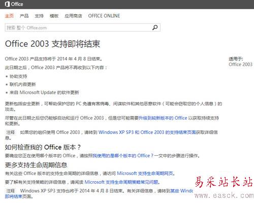 4月8日之后,Office 2003不再收到微軟提供的協(xié)助支持、聯(lián)機(jī)內(nèi)容更新、來自Microsoft Update的軟件更新、安全更新。