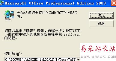 我想給原來的OFFICE 2003增加ACCESS,可是在更改安裝的時候提示“無法訪問您要使用的功能所在的網絡位置”(我的安裝原文件是放在E盤內的),這是怎么回事呢?怎么解決?