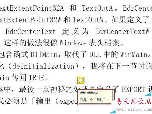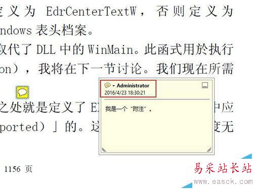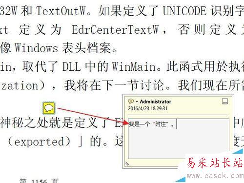 5、添加完成后,可以看到一個附注的圖標,顯示的非常簡潔。把鼠標移動到這個圖標上面,就會彈出一條附注內容的預覽。
