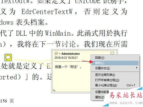 7、如果要刪除附注,只用在附注上面點擊鼠標右鍵,然后選擇“刪除”即可。