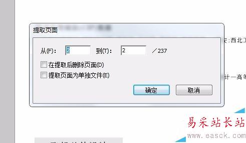 5、提取出來以后,可以在出現的界面中,選擇你所要提取的頁面的頁數,還有是否做為一個單獨文件保存。