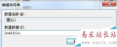 5、右鍵點擊默認值,選擇更改數據,將其值更改為【htmlfile】,點擊確定,重啟office即可。