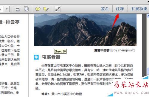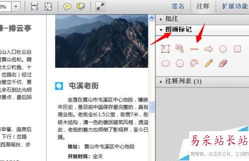 2、在打開的pdf文檔頁面的右上角點擊“注釋”按鈕,如圖所示。然后點擊“圖畫標記”選項,這樣您就可以在下面的圖畫中選擇繪畫線條。
