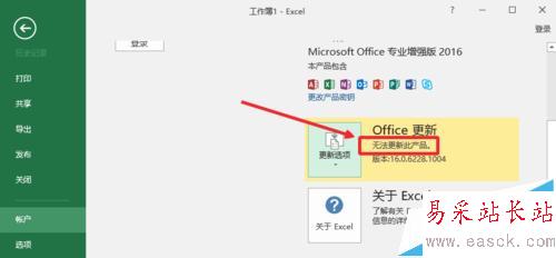 5、當Office更新這里顯示為無法更新此產品的時候,說明我們設置完成。