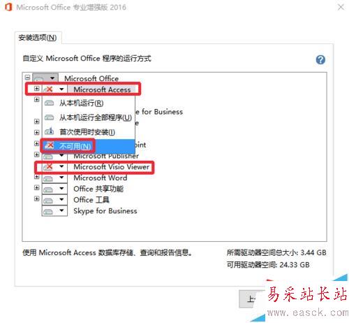 Office 2016英文版怎么自定義安裝所需要的組件?