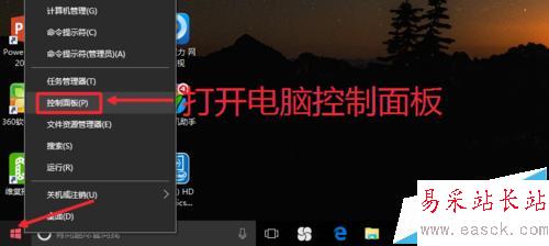 1、首先打開(kāi)電腦控制面板,因?yàn)樾【幨荳indows10系統(tǒng),開(kāi)始菜單點(diǎn)擊右鍵,打開(kāi)。