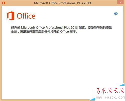 3、彈出配置進(jìn)度窗口,最后提示office配置完成。