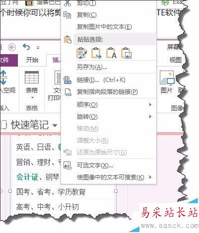 4、如圖所示,這個時候你可以將剪輯的圖片,復制到ONENOTE軟件中。