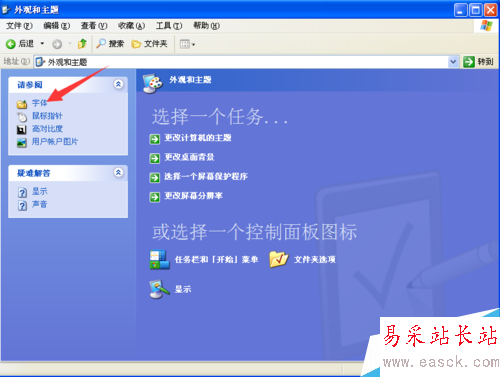 4.在“外觀和主題”選項(xiàng)中左邊小窗口中點(diǎn)擊“字體”進(jìn)入;