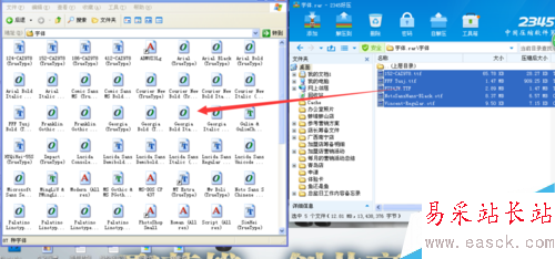 7.直接將選中的字體格式內(nèi)容拖拽到之前打開的控制面板字體窗口中,即可完成安裝操作;