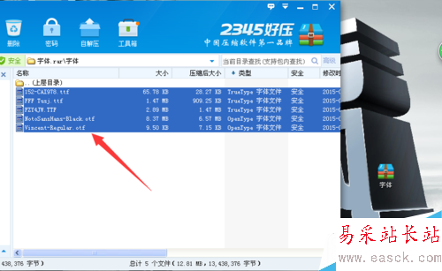6.將下載好的字體文件壓縮包打開,選中要安裝的字體格式內(nèi)容;
