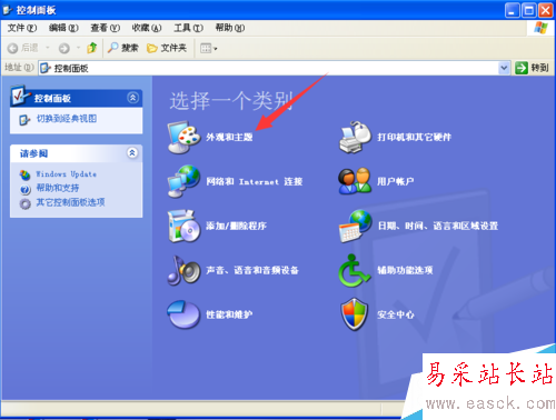 3.在控制面板中選擇一個(gè)類別,點(diǎn)擊“外觀和主題”選項(xiàng);