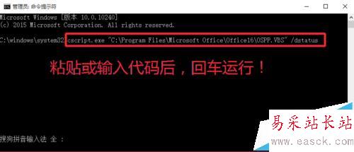 cscript.exe "C:/Program Files/Microsoft Office/Office16/OSPP.VBS" /dstatus 然后回車,查看具體的信息。或者直接復制這個代碼到界面。
