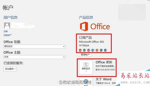 • 運行下載的工具即可自動升級到Office 2016。升級之后組件名稱會變?yōu)镺ffice 2016,不過產(chǎn)品信息中仍然會顯示為Office 365訂閱。