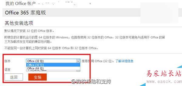• 點擊“其他安裝選項”,之后會出現(xiàn)Office 32和64位下載選項;