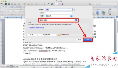5、將圖片文件放到Word文檔后,按<shift+command+S>組合健,或者單擊<文件>-<另存為>。在彈出的對話框中,存儲為:<輸入自定義的名稱>,位置:<目標路徑>,格式:<選擇文檔格式>,然后在單擊<存儲>按鈕。