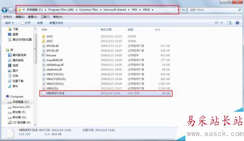 2、找到找到文件VBE6EXT.OLB,打開C:/Program Files (x86)/Common Files/microsoft shared/VBA/VBA6 因人而異,也有可能在Program Files目錄里。