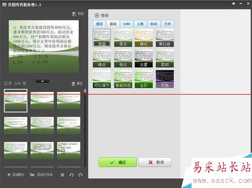 3、在特效里先選擇黑白色,再選擇素描,這時候深色背景就被去掉了,僅留下黑色字體