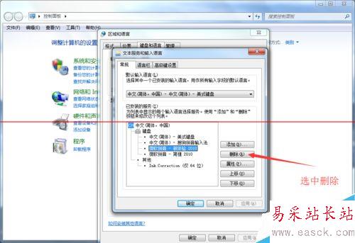 注意事項:關鍵是把控制面板中的輸入法刪除掉。