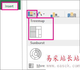2、也可以使用“推薦的圖表”中的“所有圖表”選項(xiàng)卡創(chuàng)建樹狀圖,盡管只有在層次結(jié)構(gòu)種包含空(空白)單元格時(shí)才推薦樹狀圖。