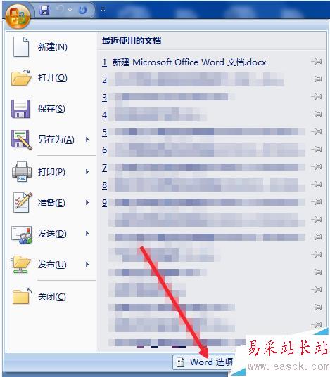 2、然后點(diǎn)擊“Word選項(xiàng)”按鈕。