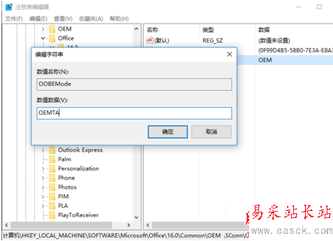 4、依次展開HKEY_LOCAL_MACHINE/SOFTWARE/Microsoft/Office/16.0/Common/OEM/OOBEMode HKEY_LOCAL_MACHINE/SOFTWARE/Wow6432Node/Microsoft/Office/16.0/Common/OEM/OOBEMode