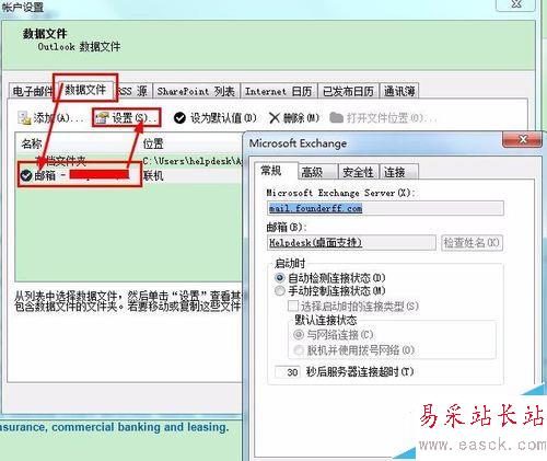 3、在設(shè)置界面找到,我們需要的選項,點擊數(shù)據(jù)文件選項卡,選中你的郵箱賬戶,點擊設(shè)置,就進入到了我們的設(shè)置界面。