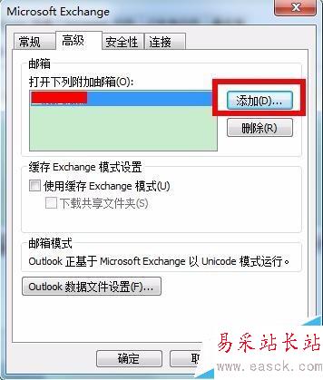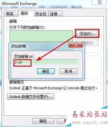 5、點擊添加,輸入需要附加的郵箱名稱,點擊確定