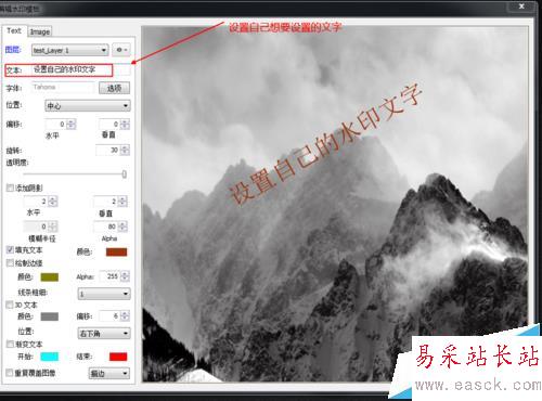 4、雙擊自己新建的模版進(jìn)入以下界面,進(jìn)行編輯自己的水印信息。如:文字字體,文字顏色等等。如圖: