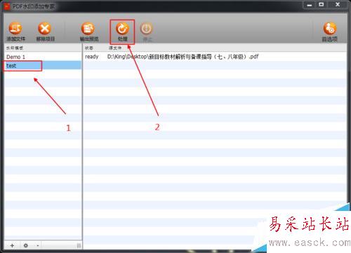 5、編輯好了水印文字等信息,直接點(diǎn)擊右上角的X關(guān)閉即可。之后會(huì)返回到軟件的主界面,添加需要添加水印的PDF文件,可以同時(shí)添加多個(gè),支持批量添加的。選擇水印模版,點(diǎn)擊處理即可。