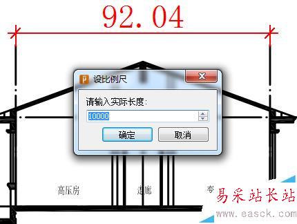 2、使用【設比例尺】功能進行標注比例尺,通過標注已知的實際長度,自動計算比例尺