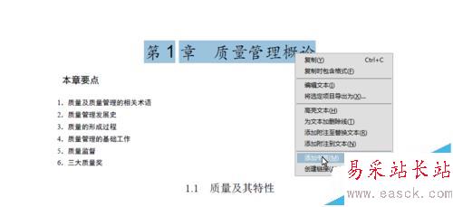 方法三:選中文中的標題或文字,然后右鍵,添加書簽。