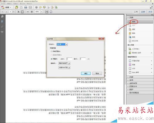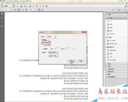 4、選擇旋轉按鈕,在彈出的對話框中,根據實際的需要選擇旋轉選項,這里我們選擇所有頁面,如下圖所示: