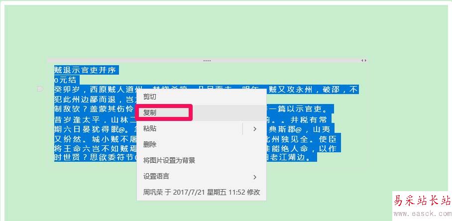 8、全選右側(cè)文字,右鍵點擊,在右鍵菜單中點擊:復(fù)制;
