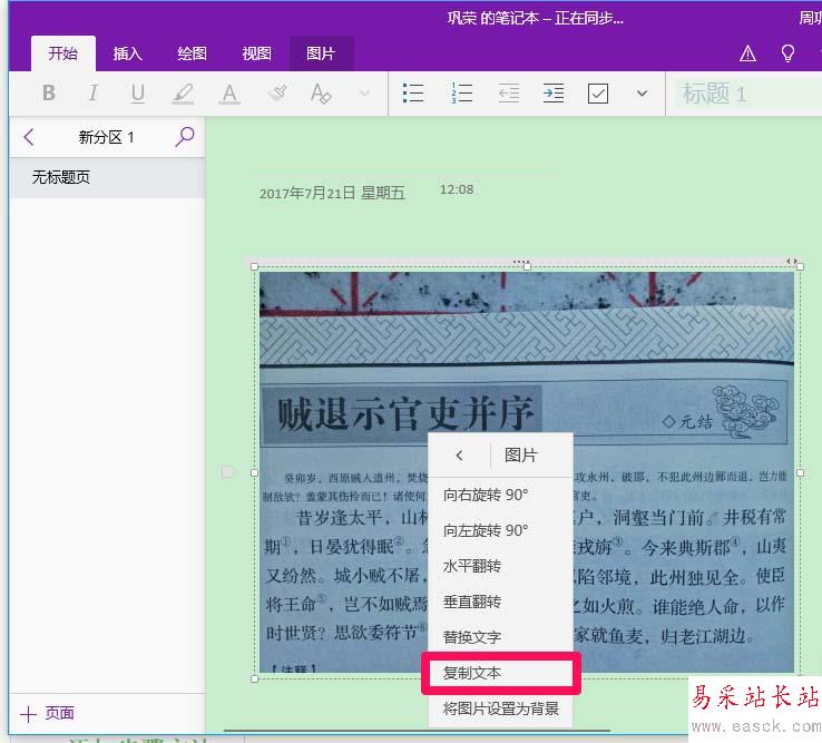一、OneNote將圖片文字轉(zhuǎn)換為電子文字方法