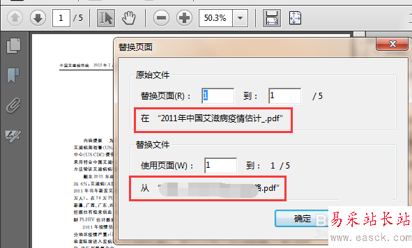 6、下一個對話框中,選擇替換內容所在頁碼以及被替換內容所在頁,點確定,再點是。就完成了。