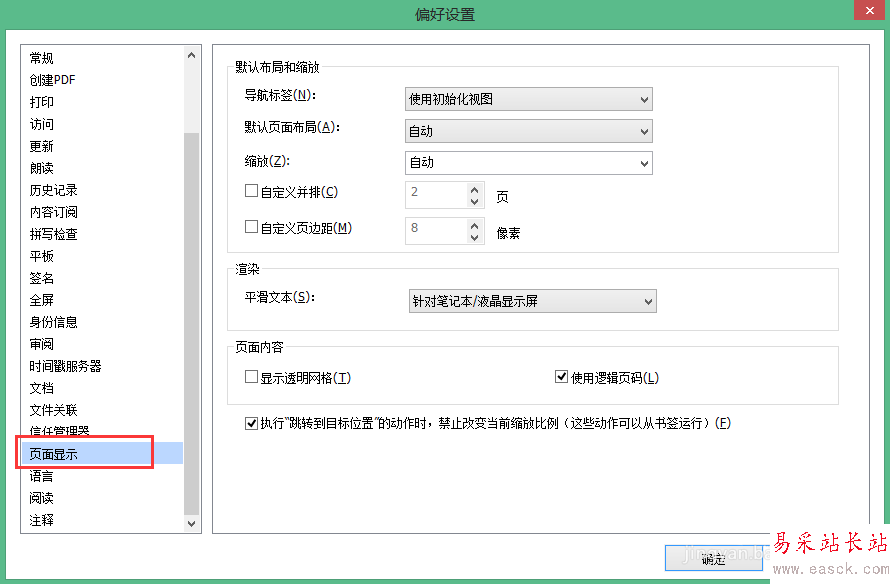 3、然后勾選上右側最底部“執行‘跳轉到目標位置’的動作時,禁止改變當前縮放比例(這些動作可以從書簽運行)”,然后確定即可。