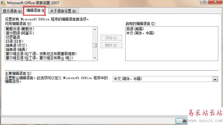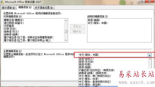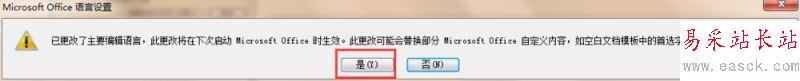 5、在“請選擇定義 Microsoft Office 應用程序默認方式的語言”框中選擇所需要的語言;