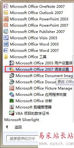 3、在新出的子菜單中,選中“Microsoft Office **** 語言設置”。