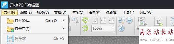 2、在PDF編輯器菜單欄中點擊“文件”菜單,在文件下拉菜單中選擇“打開”選項。