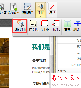 5、點擊工具欄中的注釋工具,在注釋工具中選擇編輯注釋工具。