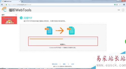 5、待它自動上傳完文件后,它就會自動進行壓縮PDF文檔。如下圖,你完全不要做任何操作。