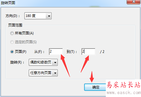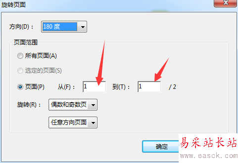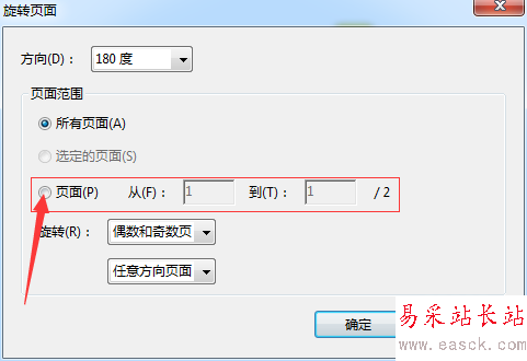 4、就會(huì)彈出了一個(gè)的旋轉(zhuǎn)頁面的窗口當(dāng)中,勾選上頁面的選項(xiàng)。