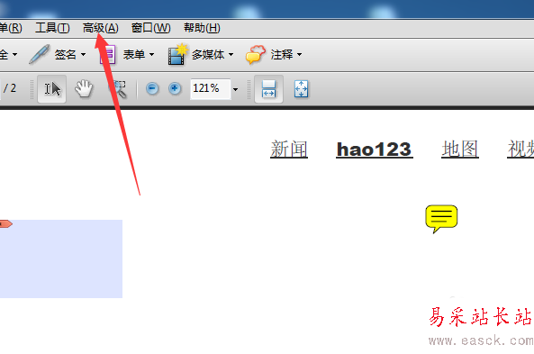 2、點(diǎn)擊了的Adobe Acrobat的菜單中的高級(jí)的菜單。