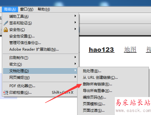4、點(diǎn)擊了文檔處理的選項(xiàng)之后,彈出了下一級(jí)菜單選中為刪除所有鏈接的選項(xiàng)。